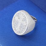This luxurious ring is designed to turn heads with its fully iced-out Moissanite stones, known for their diamond-like brilliance and durability. Whether you wear it as a symbol of faith or a statement piece, this ring exudes confidence and prestige. The heavy, solid feel of 16.05g of sterling silver ensures long-lasting wear, making it a timeless addition to any jewelry collection.
