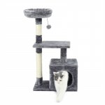 - Sisal-Wrapped Scratching Post: The natural sisal-covered scratching post helps keep your cat’s claws healthy and satisfies their instinct to scratch while preventing damage to your furniture.