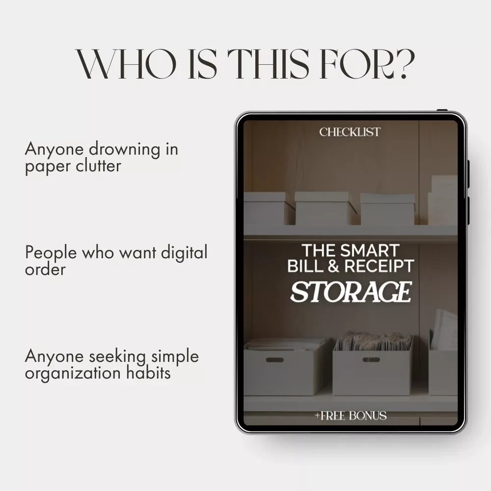 Stop wasting hours searching for that one receipt. Download The Smart Bill & Receipt Storage Checklist today and start creating your personalized, clutter-free filing system. It’s the best way to store bills and receipts—made simple, digital, and doable. Click “Add to Cart” and get organized in minutes!