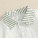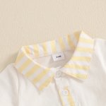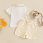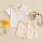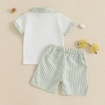 Make your little one look effortlessly stylish and feel cool this summer with this charming 2-piece outfit for toddler boys. Designed for warm weather play and everyday adventures, this outfit includes a smart turn-down collar short sleeve shirt with button details, paired perfectly with elastic waist striped shorts. Whether it’s a family outing, a playdate, or a casual day at the park, this set keeps your toddler comfy, cute, and photo-ready.