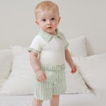 - 2-piece summer outfit: Short sleeve shirt + striped shorts