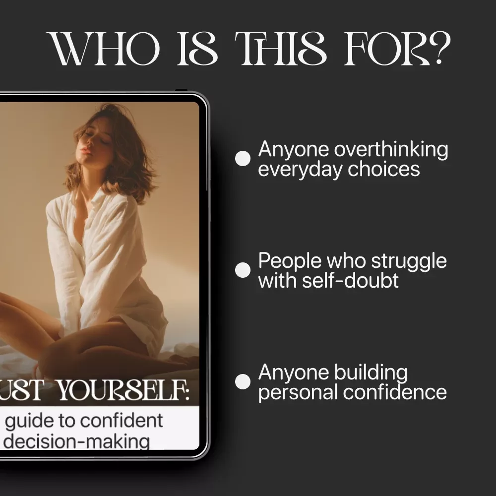 This guide is perfect for students, professionals, entrepreneurs, creatives, and anyone who struggles with self-doubt or second-guessing. If you’ve ever asked yourself how to trust my own decisions in big or small situations, this guide will meet you right where you are.