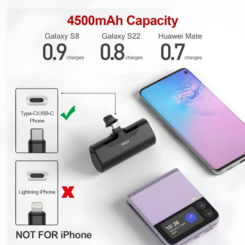 Never run out of battery again with this ultra-compact 4500mAh USB-C power bank. Designed for convenience, it’s small enough to fit in your pocket yet powerful enough to give your phone a fast and reliable charge. Whether you’re traveling, commuting, or just on the go, this portable power bank ensures you stay connected when you need it most.