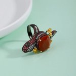 This red agate vintage cocktail ring is more than just a piece of jewelry – it’s a statement of style and sophistication. Whether you’re dressing up for a wedding, an anniversary, or a special party, this ring is sure to turn heads. The rich color of the red agate is both bold and warm, making it an ideal accessory for fall and winter fashion. The adjustable band ensures a comfortable fit, while the stunning craftsmanship guarantees that you’ll cherish this piece for years to come.