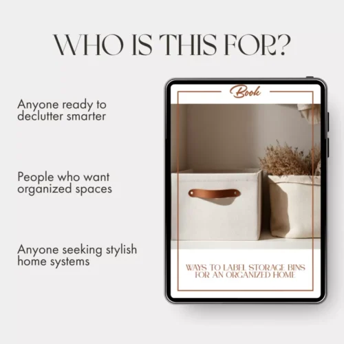 This eBook is designed for homeowners, renters, DIY enthusiasts, and professional organizers who want simple yet effective strategies for labeling storage bins and maintaining long-term organization. Whether you love minimalism or creative decor, you’ll find techniques that match your style and needs.