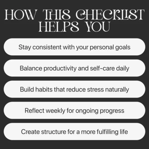 This guide is perfect for anyone seeking growth through intention — from busy students and creatives to goal-setters who crave consistency. It’s ideal for those ready to prioritize personal wellbeing while making measurable progress week after week.