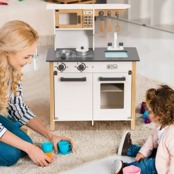 - Realistic Design: A charming wooden design that mirrors a real kitchen, offering kids a true-to-life cooking experience without any of the dangers of a real stove.