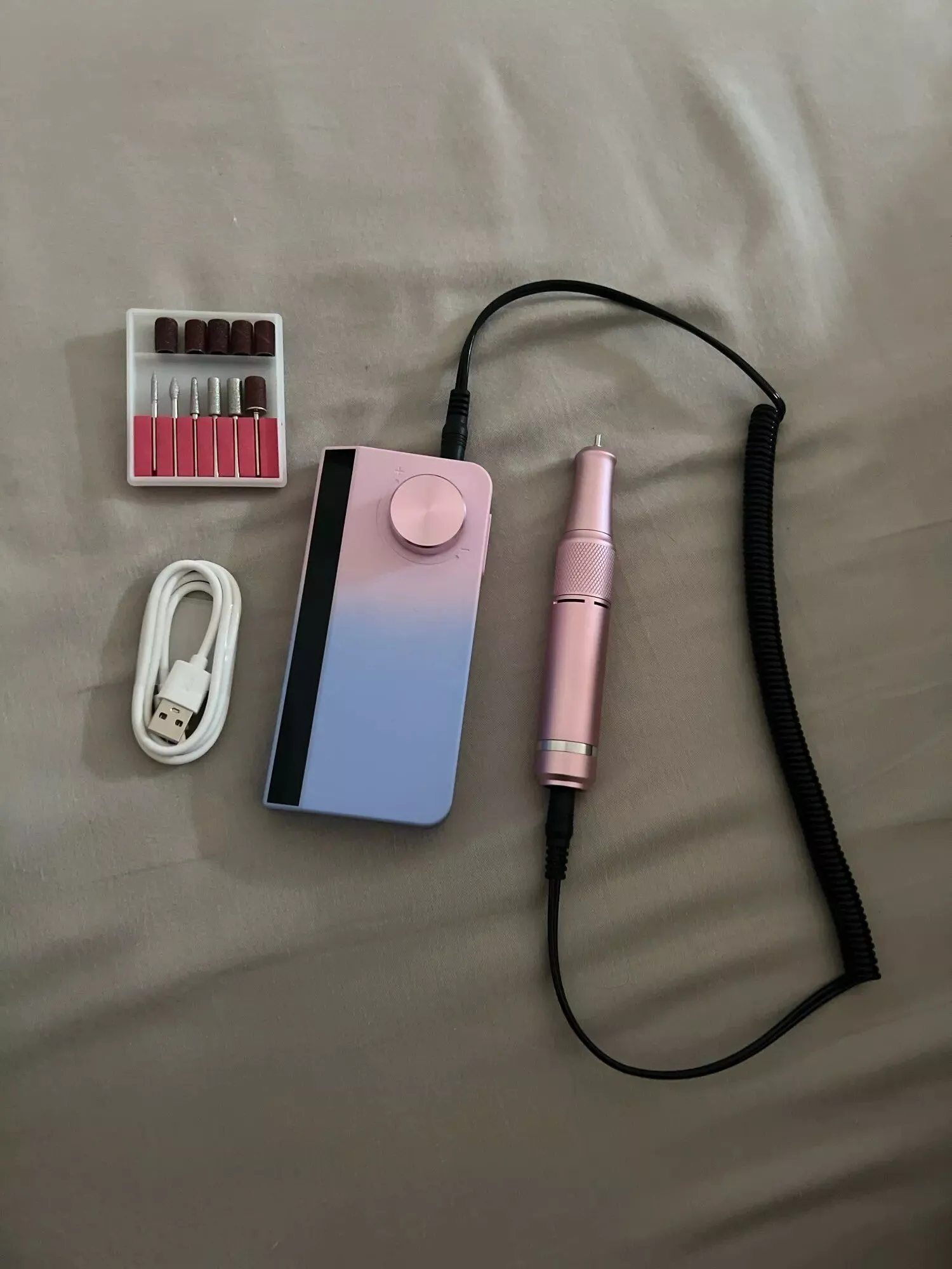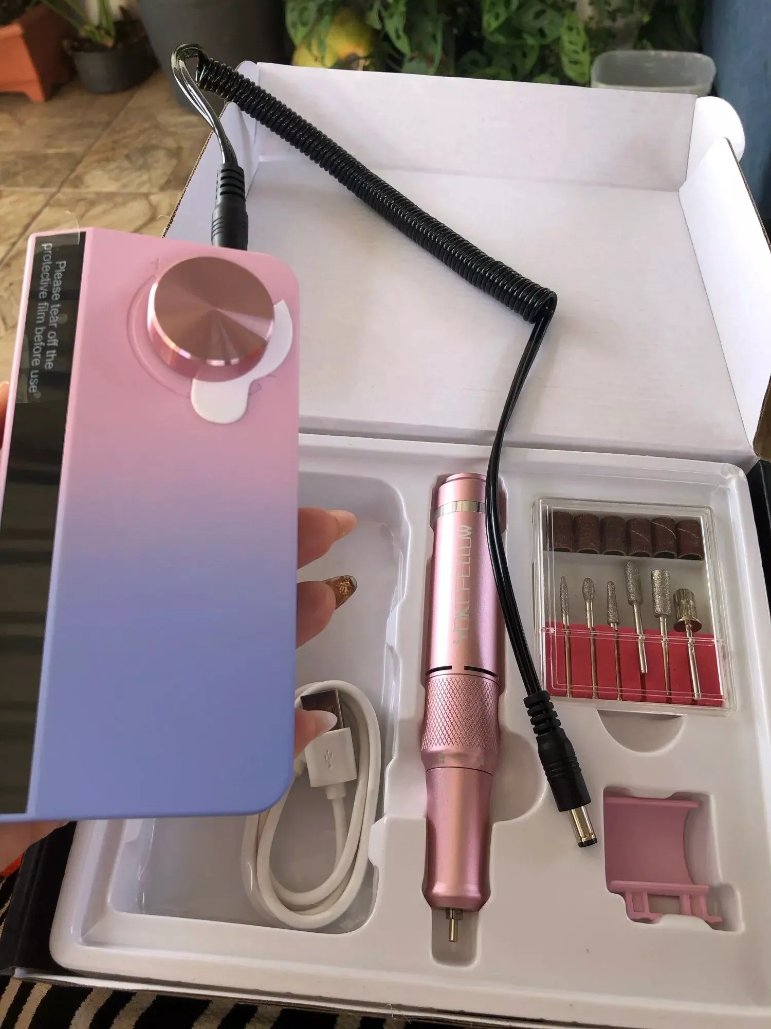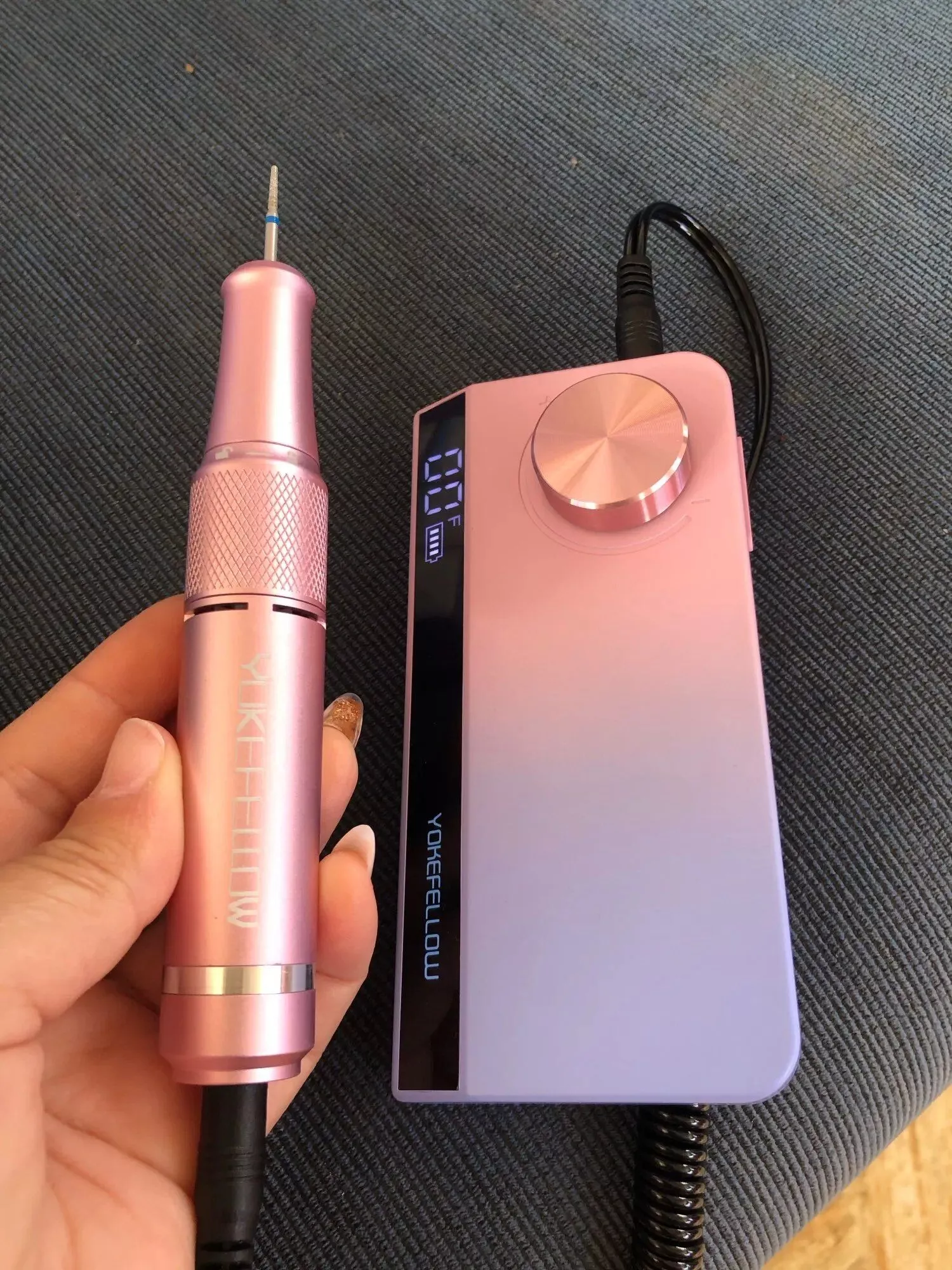 What sets our manicure machine apart is its blend of power, precision, and portability. Ideal for both beginners and seasoned professionals, it’s designed to offer an effortless nail care experience. Its unique pause mode allows for meticulous detail work, while the memory function provides convenience and efficiency. The ergonomic design ensures comfort during prolonged use, making it perfect for extensive nail care sessions.