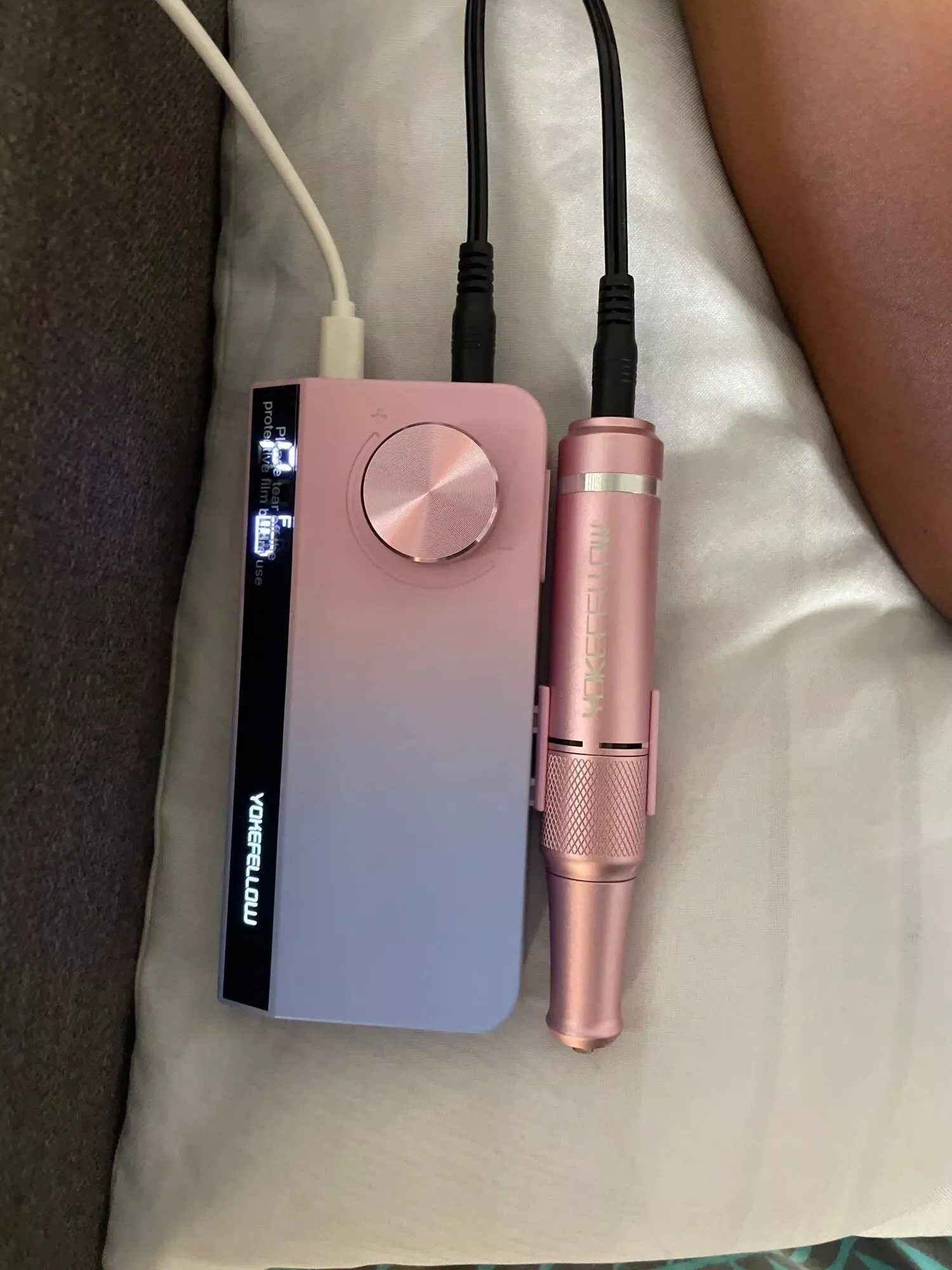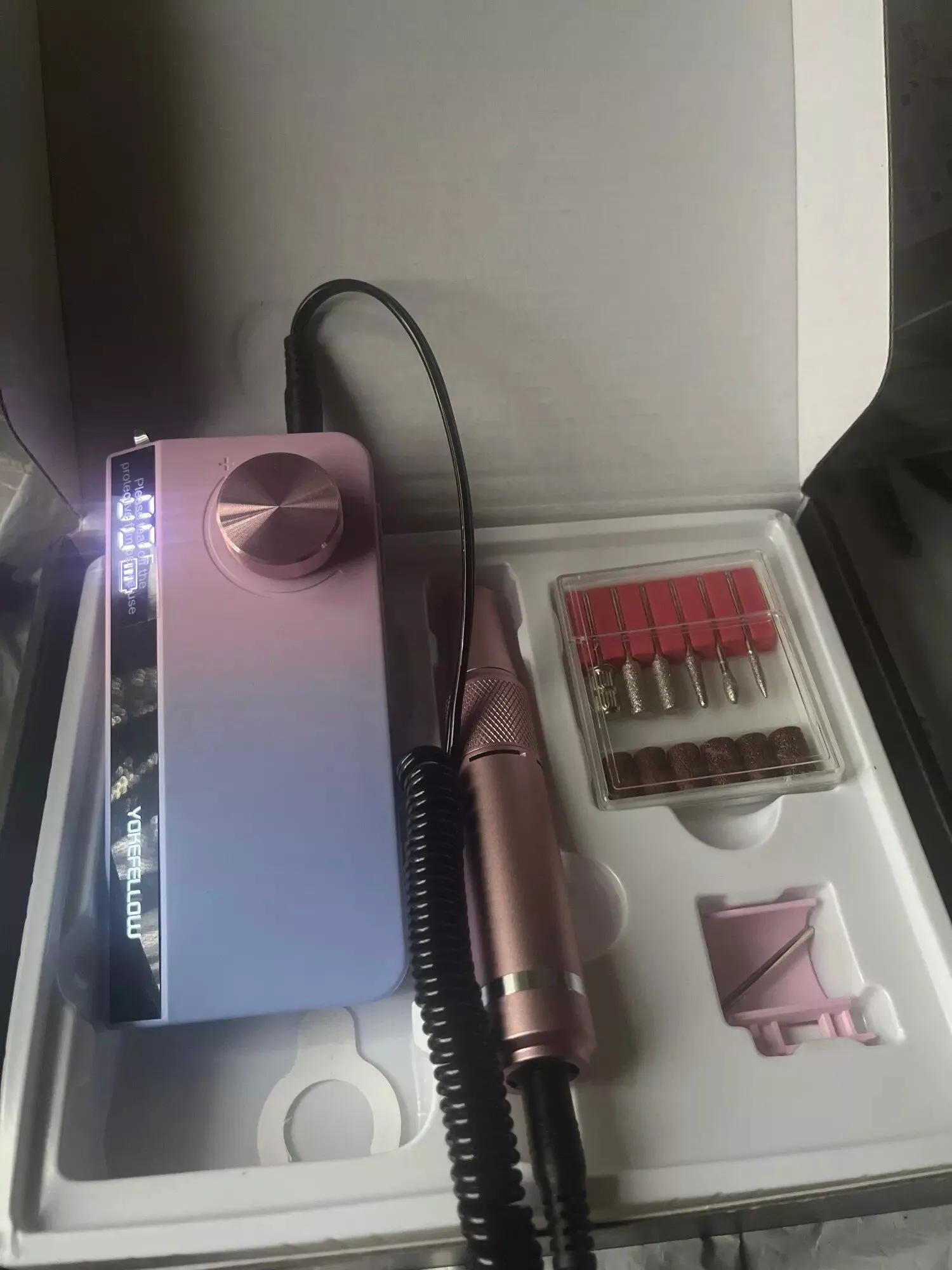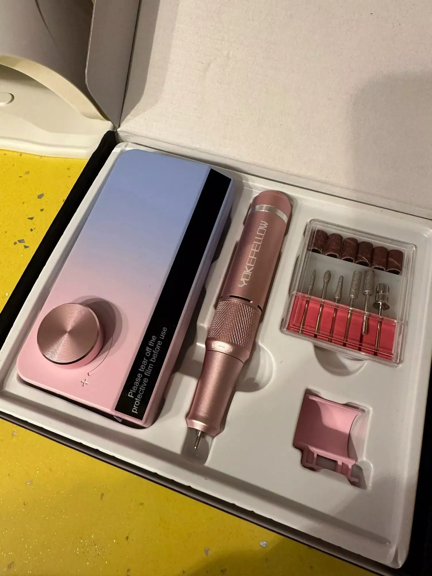 What sets our manicure machine apart is its blend of power, precision, and portability. Ideal for both beginners and seasoned professionals, it’s designed to offer an effortless nail care experience. Its unique pause mode allows for meticulous detail work, while the memory function provides convenience and efficiency. The ergonomic design ensures comfort during prolonged use, making it perfect for extensive nail care sessions.
