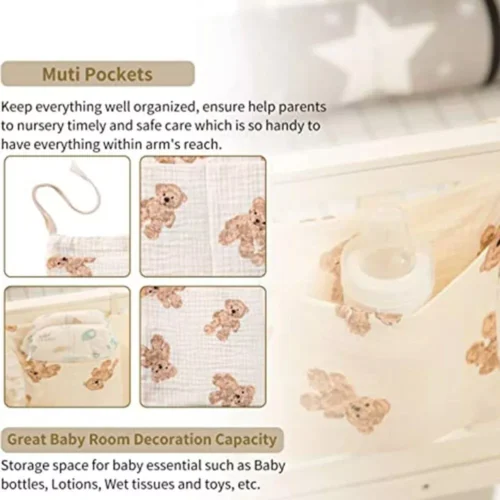 Enhance your nursery with this essential organizer. Click “Add to Cart” now and simplify your parenting journey with our Multi-Purpose Baby Nursery Organizer and Diaper Caddy. Your satisfaction and your baby’s comfort are our top priorities!