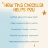Unlike lengthy parenting books, this checklist is concise, actionable, and designed for real-life use. With practical steps, shared documentation tools, and a bonus resource offer, it empowers you to create consistency without overwhelm.