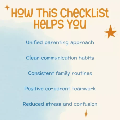 This digital checklist is ideal for co-parents, separated or divorced parents, blended families, or any couple who wants to learn how to build consistency between parents. It’s a simple yet powerful tool for those who value structure, teamwork, and emotional stability for their children.