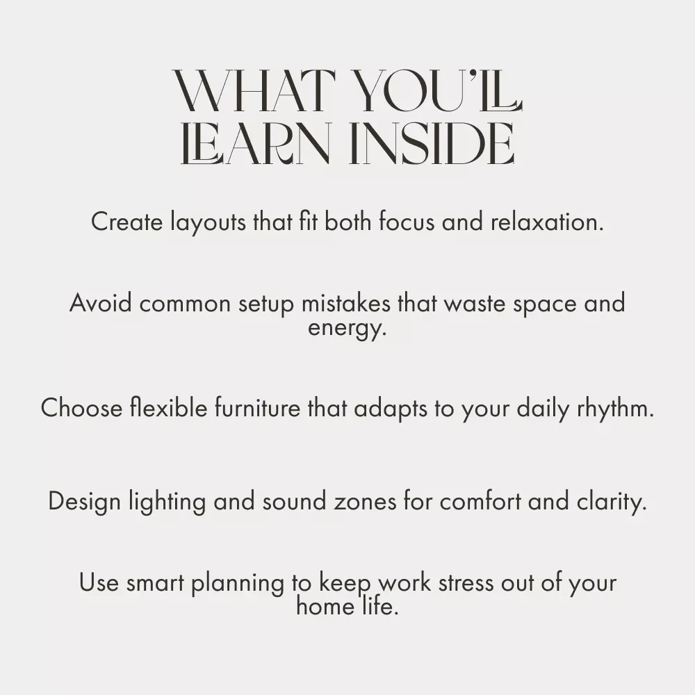 - Professional results: Learn to maximize both comfort and focus in one cohesive space.