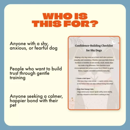 Unlike generic dog training ebooks, the Confidence-Building Checklist for Shy Dogs is created specifically for anxious or timid pups. It focuses on empathy, structure, and emotional safety — turning patience into progress. Every page encourages you to go at your dog’s pace, using proven, force-free methods that bring real results and lasting confidence.