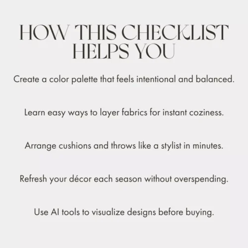 Skip the guesswork and elevate your décor instantly with the Cushion & Throw Magic Checklist. Download this digital checklist today and start transforming your home—one cushion and throw at a time!