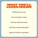 For a long time, I’ve had a deep love for animals, but with a career that demands so much of my attention, I just couldn’t commit to the responsibilities of owning a pet. That was until I came across this incredible guide. It’s a game-changer for anyone who, like me, has a busy lifestyle but still wants the companionship and joy that come with having a pet. The beauty of this guide lies in its simplicity—it’s designed specifically for those of us who are often too busy to take on the complexity of pet care. The content is not just informative but incredibly easy to digest, offering clear and practical steps to help you integrate a pet into your life without feeling overwhelmed.