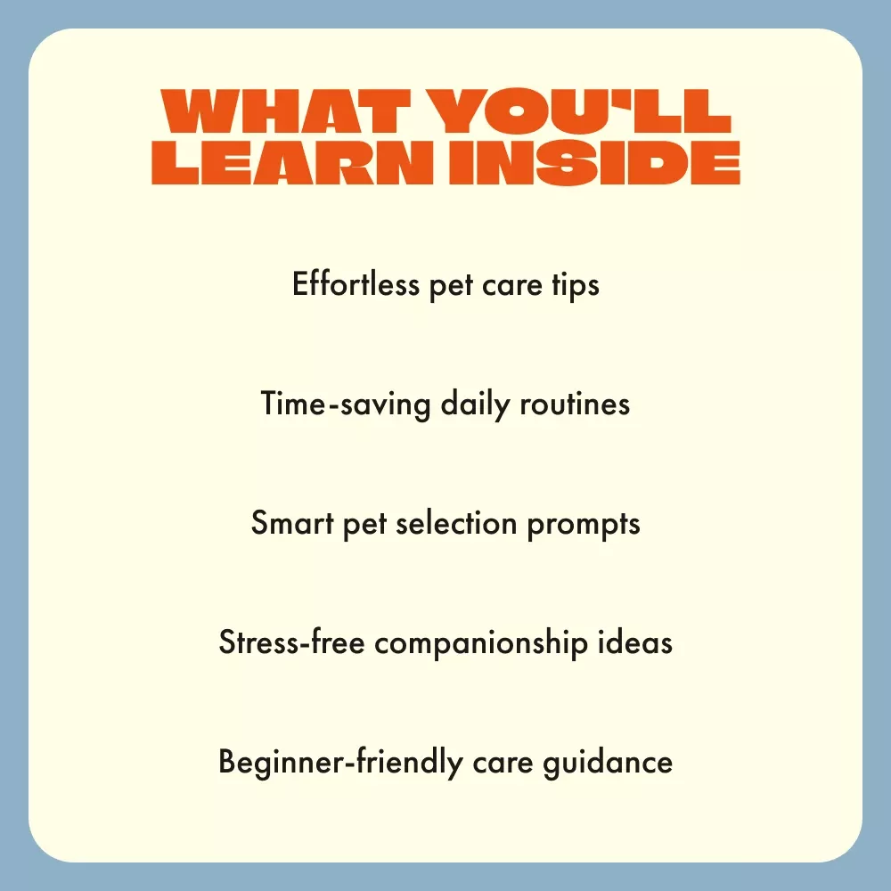 - 🧠 Smart Prompts for Choosing and Caring for Pets: Step-by-step questions and routines to make pet ownership easy and guilt-free.