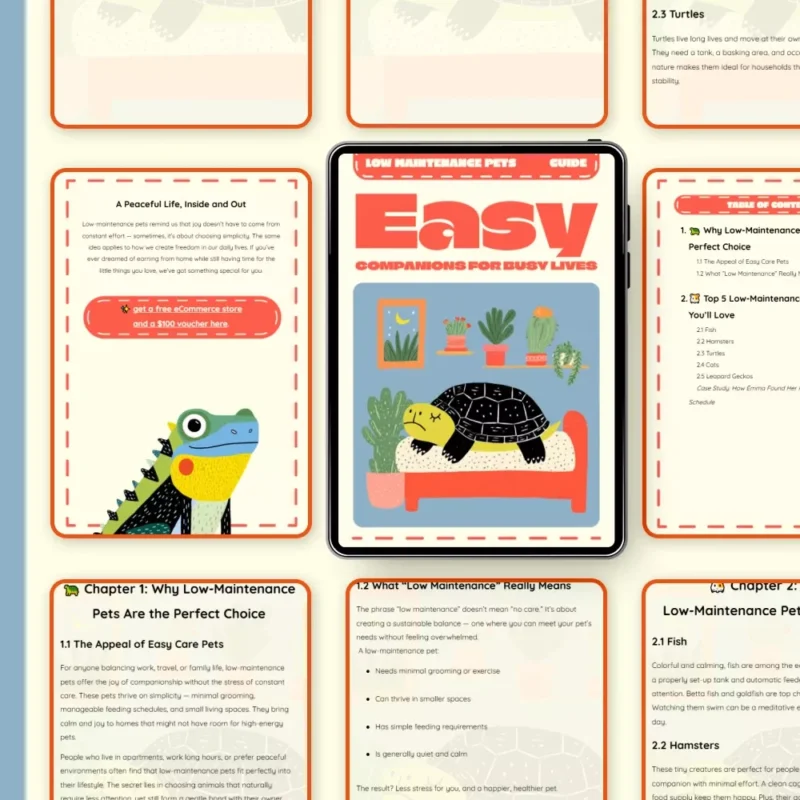 Don’t let a busy schedule stop you from finding your perfect pet. Discover the best low maintenance pets today with this instantly downloadable guide. Download Easy Companions for Busy Lives now and start enjoying the calm, joy, and comfort of a pet that truly fits your life.