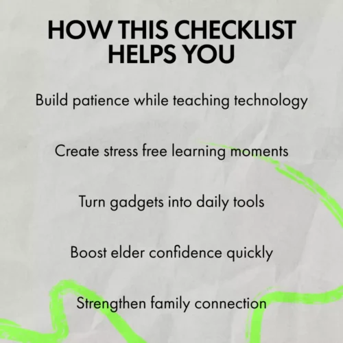 This digital checklist is perfect for adult children, caregivers, family members, educators, or anyone supporting seniors who want to feel more comfortable with technology. It’s ideal if you’re patient, caring, and looking for a proven approach to how to help elders to get used to gadgets without overwhelming them.