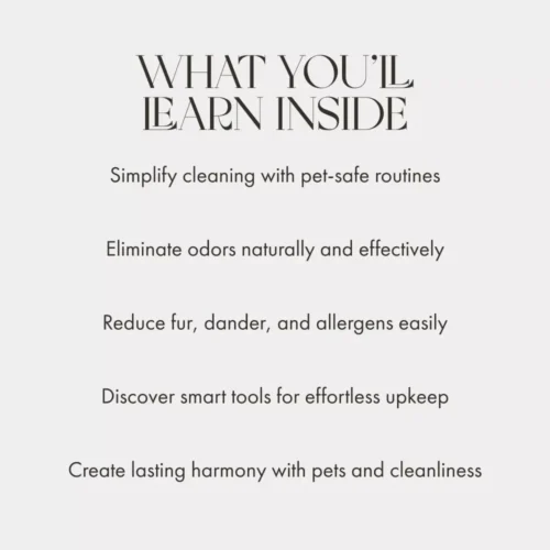 This eBook is ideal for pet owners, families, or anyone seeking practical, easy-to-follow advice on how to clean with pets in the house. Whether you’re a first-time pet parent or a seasoned animal lover, you’ll find solutions that fit your lifestyle and make your home feel fresh again.