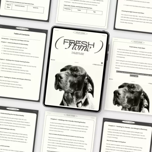 Love your pets but not the mess? Fur, Paws, and a Fresh Home is your ultimate guide on how to clean with pets in the house—without sacrificing your sanity or your home’s freshness. This comprehensive eBook helps you create a pet-friendly cleaning routine that actually works, with simple, science-backed strategies and tools that make cleanliness effortless, even with dogs, cats, or multiple pets under one roof. Whether you’re battling fur tumbleweeds or mysterious odors, this guide shows you how to restore harmony between your pets and your living space.