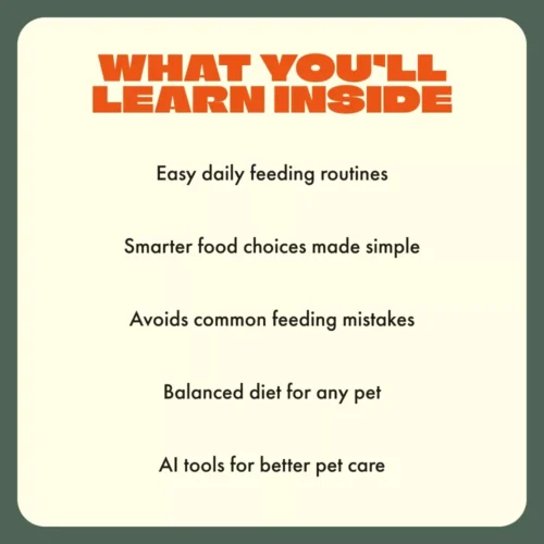 • Chapter 3: Common Mistakes and How to Avoid Them — Spot overfeeding signs, prevent “treat overload,” and discover how AI tools can help you manage feeding habits.