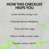 Unlike generic energy guides, this checklist focuses entirely on smart plugs and real-world usage. It combines automation, energy monitoring, and AI-powered insights into one easy-to-follow system. No fluff, no technical overwhelm—just practical steps that work.