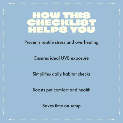 Unlike generic care sheets, this checklist combines expert-backed care advice with actionable steps tailored to your specific lizard species. It simplifies the science of reptile thermoregulation into an easy daily routine—so you can stop guessing and start creating the perfect habitat.