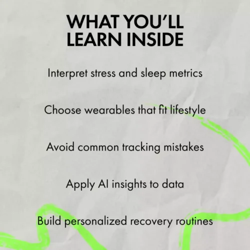 This ebook goes beyond surface-level advice by focusing on wearable tips for stress and sleep data that are realistic, science-informed, and easy to apply. Instead of generic wellness advice, you’ll learn how to interpret trends, avoid common tracking mistakes, and use AI tools to personalize your stress and sleep strategy across multiple devices.