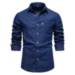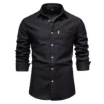 Be the first to review “Men’s Autumn Cotton Denim Slim-Fit Casual Shirt – Solid Long Sleeve”