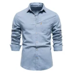 Men’s Autumn Cotton Denim Slim-Fit Casual Shirt – Solid Long Sleeve