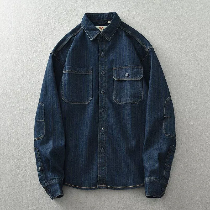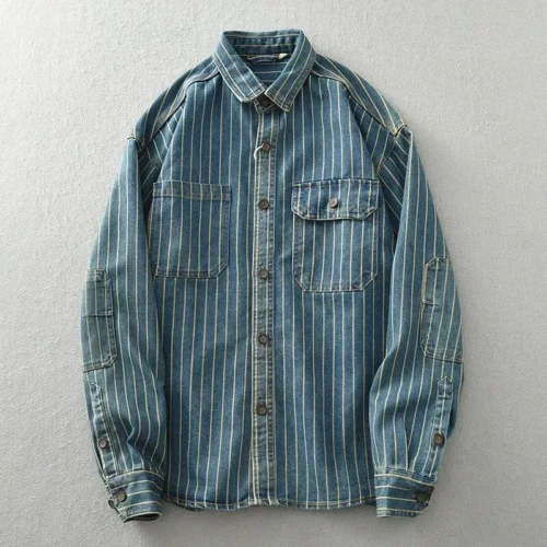 Men’s Retro Heavyweight Denim Striped Shirt Jacket