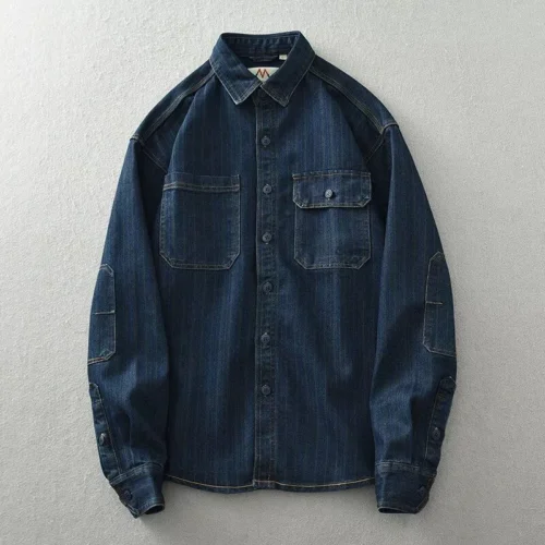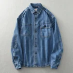 Step into a blend of retro flair and modern durability with our Men’s Retro Heavyweight Denim Striped Shirt Jacket. This is not just a shirt, nor merely a jacket—it’s a statement piece that adds a layer of confidence to every casual encounter. Crafted for the spring and autumn seasons, it’s the perfect transitional garment that combines practicality with timeless style. Imagine the softness of pure cotton against your skin, paired with the sturdy construction of broadcloth fabric—it’s comfort and reliability in every stitch.