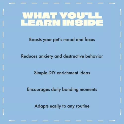This eBook is ideal for dog and cat owners who want to make indoor life more stimulating. Whether you’re working from home, live in an apartment, or simply wish to enhance your pet’s happiness, these strategies help bring variety and excitement into daily routines.