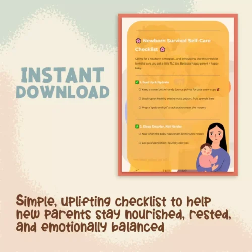 Be the first to review “Newborn Survival Self-Care Checklist | Printable Digital Download | Tips for Self-Care with Newborn at Home”