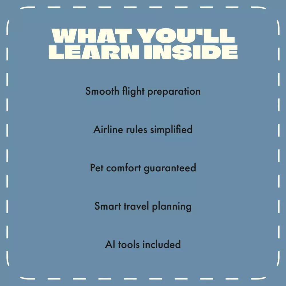 - Chapter 1: Preparing Your Pet for Takeoff – Learn how to meet airline requirements, choose the right carrier, and handle health documents with ease.
