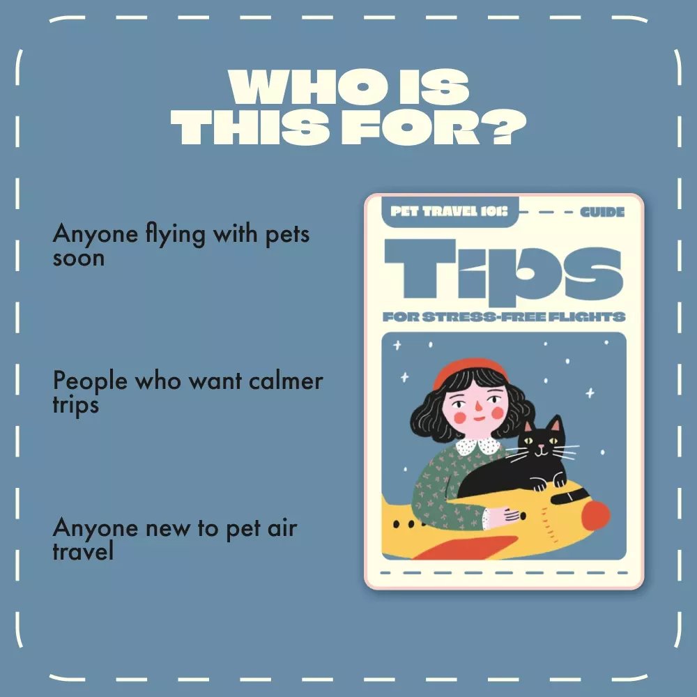 This digital guide is designed for pet parents, frequent flyers, and anyone planning to bring their dog or cat along on a plane. Whether it’s your first flight or your tenth, Pet Travel 101 gives you the confidence and know-how to travel smoothly with your pet.
