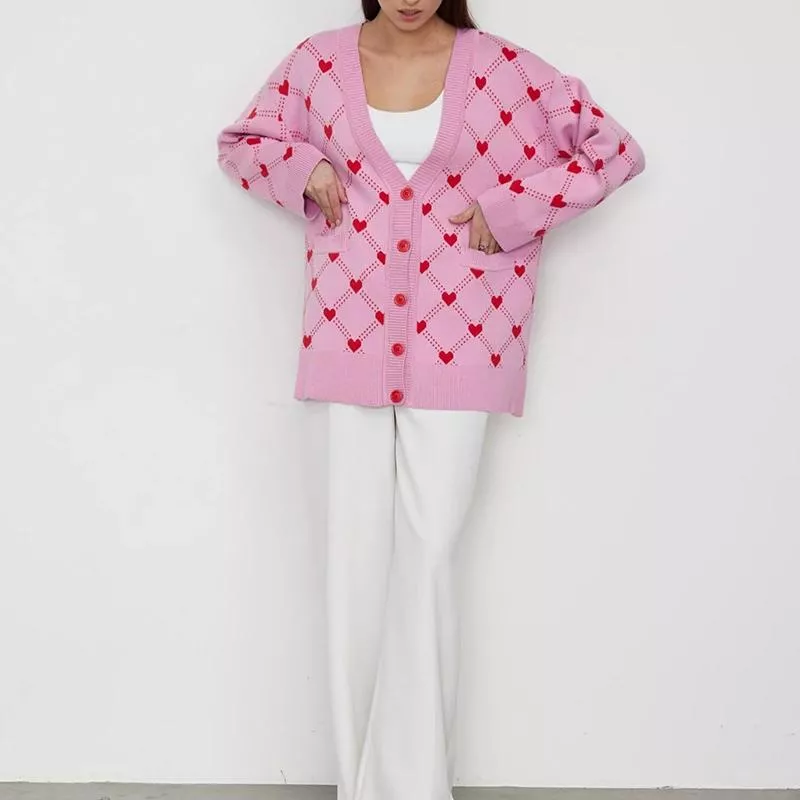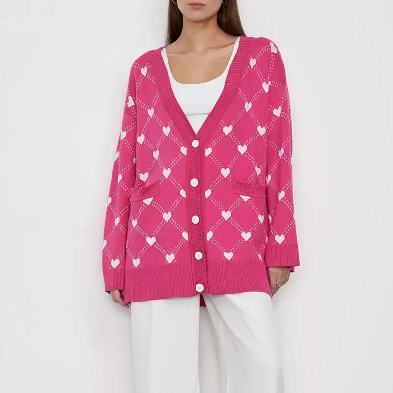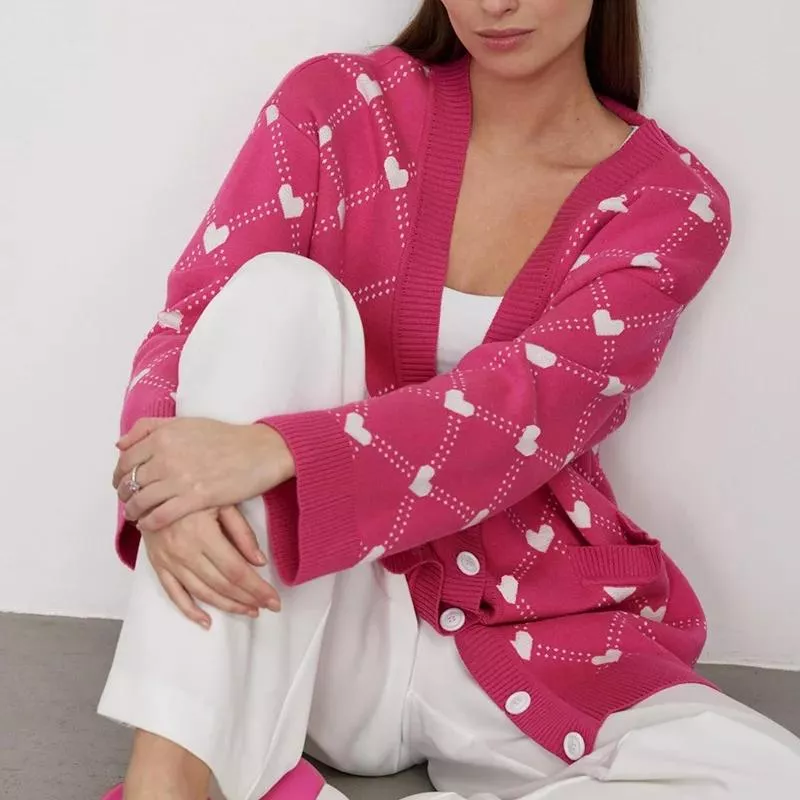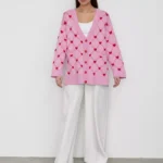 Whether you’re heading to the office, enjoying a casual day out, or dressing up for a night out, this knit cardigan is incredibly versatile. Its elegant design and comfortable fit make it suitable for middle-aged women looking to enhance their style quotient. The unique geometric pattern and pink hue ensure you stand out in the best way possible.
