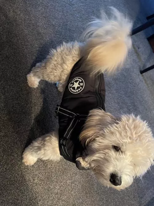 My dog Bryan and I love the jacket, and the fast service was appreciated.