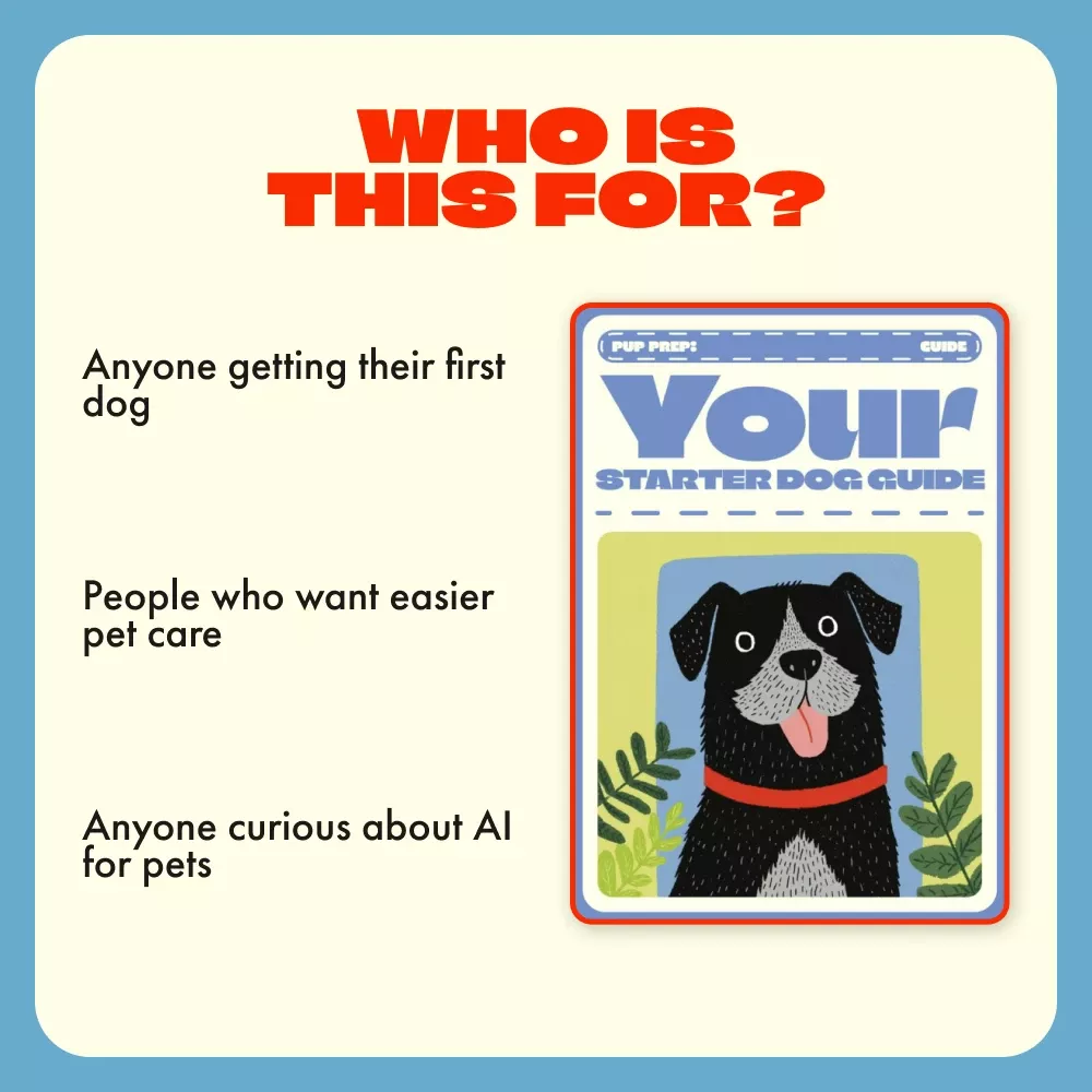 • Smart and modern – The only guide that shows how AI can make dog parenting easier and more efficient.