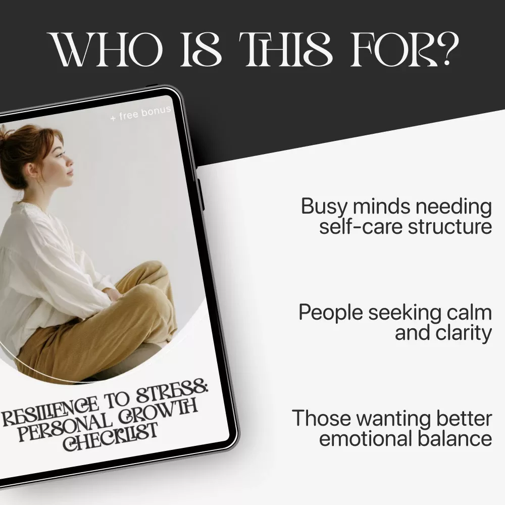 This digital checklist is ideal for anyone ready to take charge of their emotional health. Whether you’re navigating work pressure, personal changes, or just want to feel more grounded, Resilience to Stress: Personal Growth Checklist gives you the structure and motivation to build lasting inner strength.