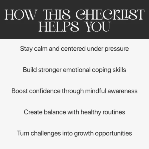 Unlike generic self-help guides, this checklist blends mindfulness, practical psychology, and daily self-care into a straightforward format you can actually follow. Every section is designed to help you reflect, act, and grow—without adding pressure or complexity to your day. It’s your realistic path to becoming calmer, stronger, and more centered in every situation.