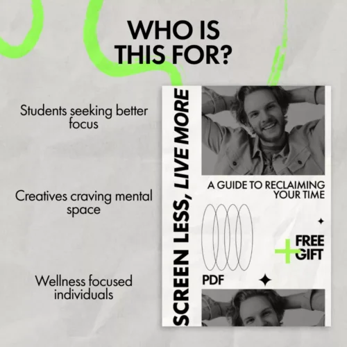 This ebook is perfect for busy professionals, parents, students, creatives, and anyone who feels overwhelmed by constant notifications and scrolling. If you’ve searched for how to reduce screen time but found advice too extreme or unrealistic, this guide was made for you.