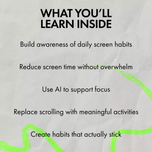 Unlike generic digital detox guides, this resource blends mindset shifts, practical habits, and modern AI support. Instead of fighting technology, you’ll learn how to use it intentionally—turning AI into a partner for focus, balance, and long-term success.