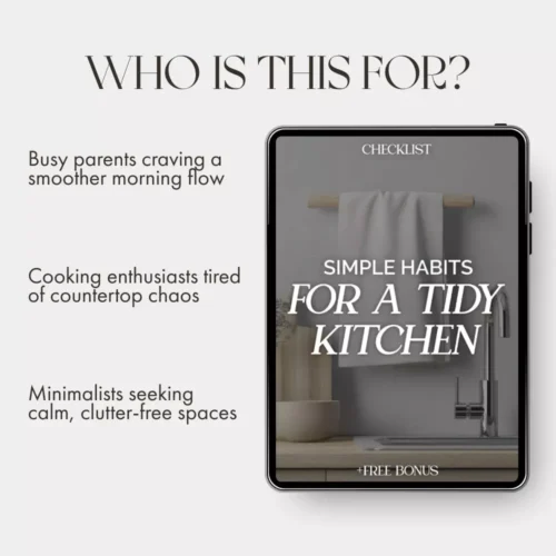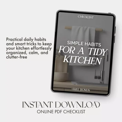Don’t let clutter steal your peace. Download the Simple Habits for a Tidy Kitchen Checklist today and discover what simple hacks keep counters clear — for good. A calmer, cleaner kitchen is just one click away!