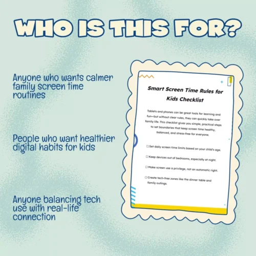 Bring more balance, structure, and calm into your home with the Smart Screen Time Rules for Kids Checklist. Download now and start creating screen time habits that truly support your child’s well-being—and your family’s peace of mind.