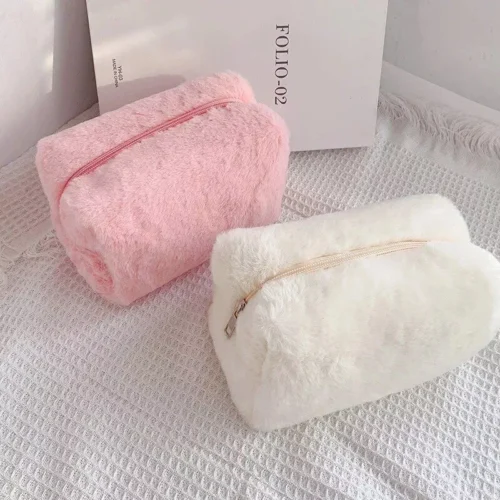 Soft Fur Travel Makeup Organizer Bag for WomenSoft Fur Travel Makeup Organizer Bag for Women