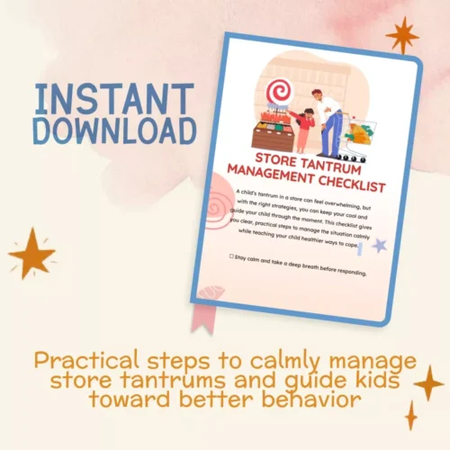 A child’s tantrum in a store can feel overwhelming, especially when all eyes seem to be on you. That’s why the Store Tantrum Management Checklist was designed—to give parents calm, clear, and effective strategies to handle difficult moments on the go. This digital download provides step-by-step guidance on what to do when child throws tantrum in store, helping you respond with patience while teaching your child better ways to cope.