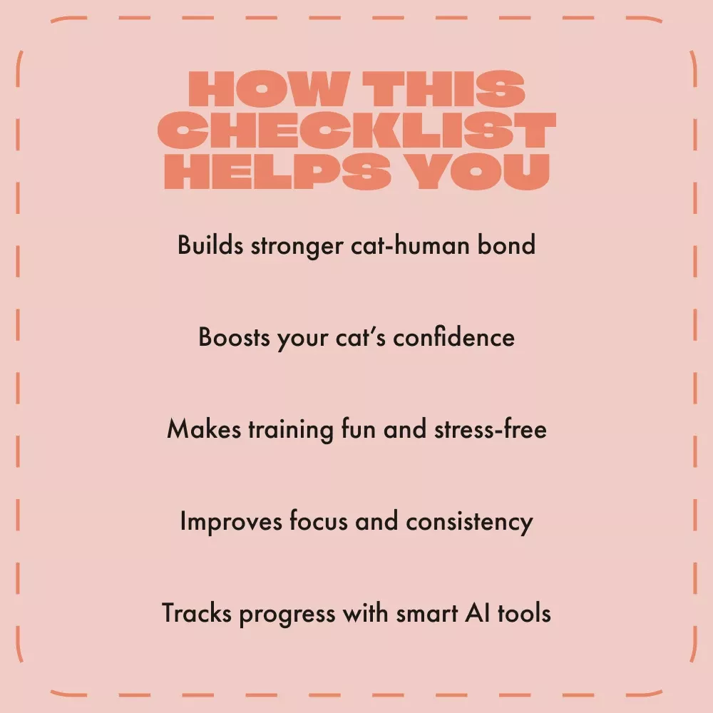As a busy pet parent, I found this cat training checklist super handy. It’s quick and clear structure made it easy to follow even with tight schedule. 🐱👍