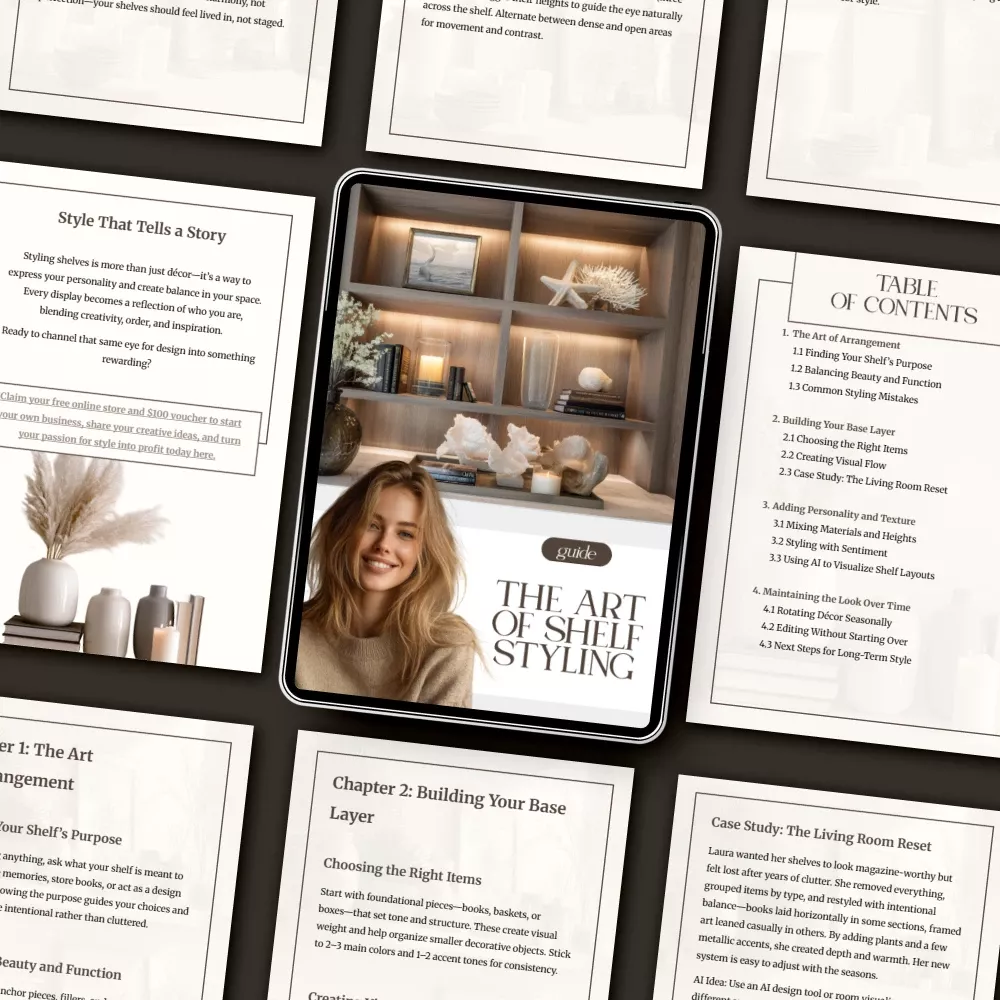Ready to fall in love with your shelves? Download The Art of Shelf Styling now and start transforming your home into a space that feels intentional, inspired, and uniquely you. Your dream shelves are just a click away!